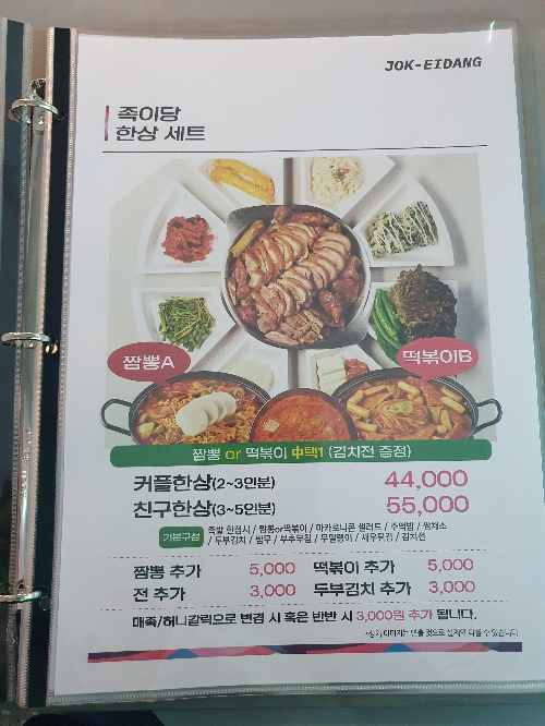 (고기추가는 족발 메뉴에서만 가능)