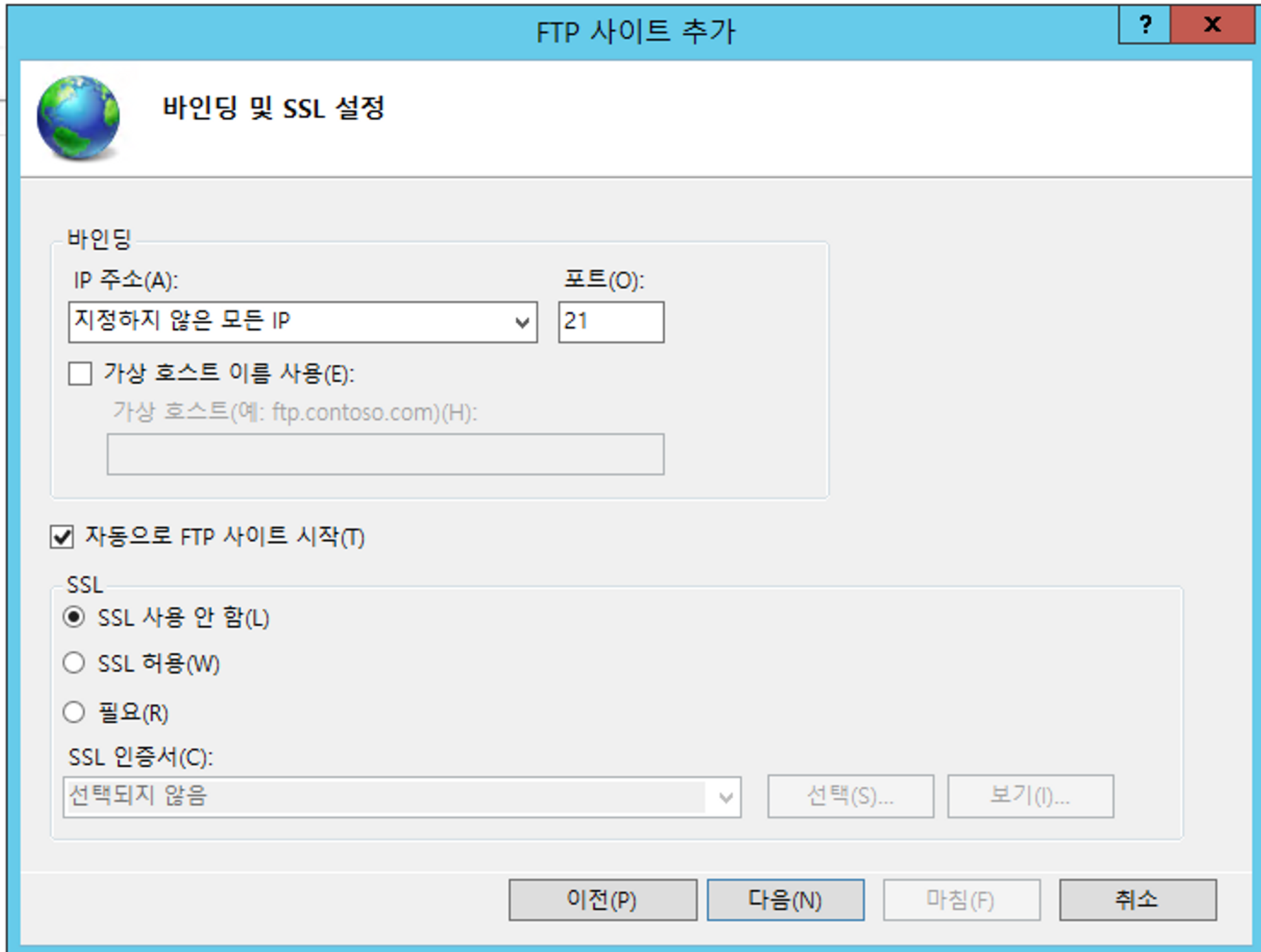 SSL 사용 안 함을 설정합니다.