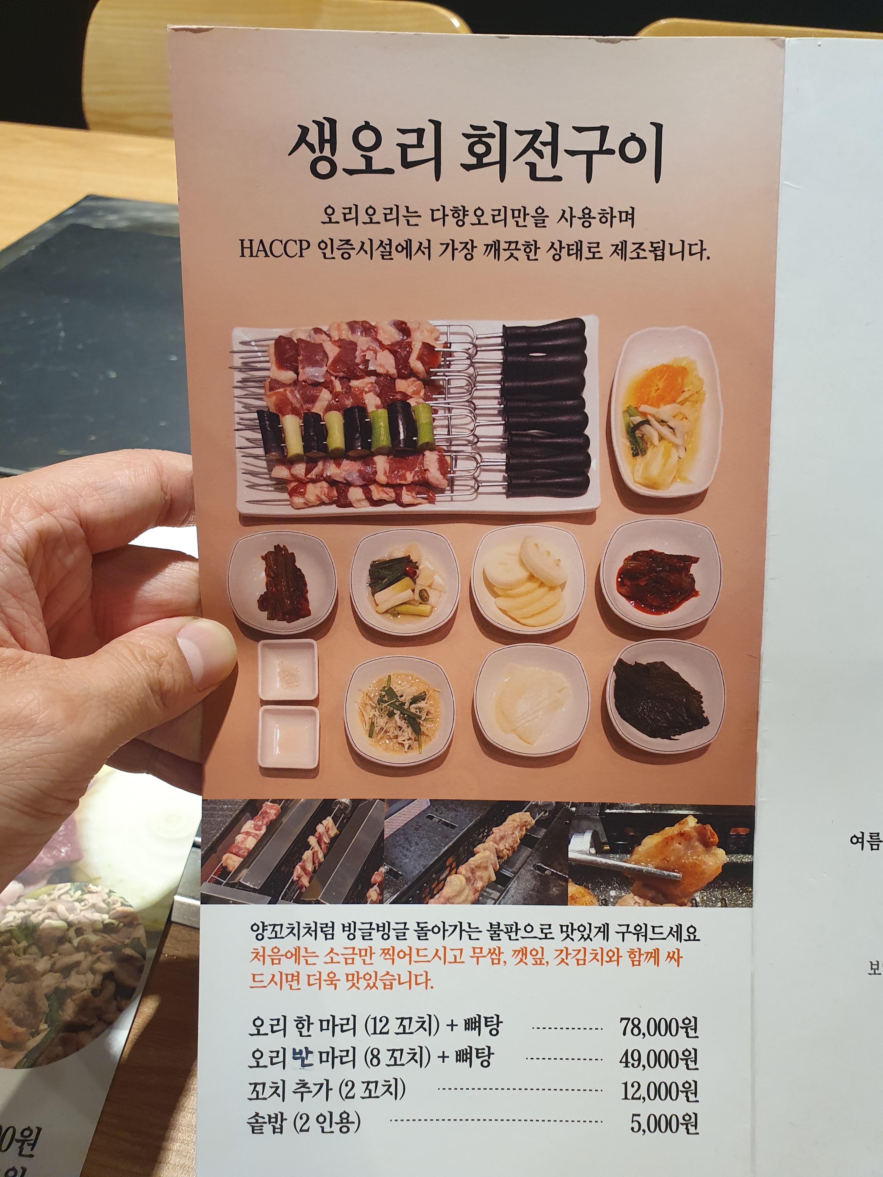 점심에 오리불고기도 꽤나 괜찮다고 생각했었는데, 저녁 오리꼬치 회전구이도 매우 좋았습니다.