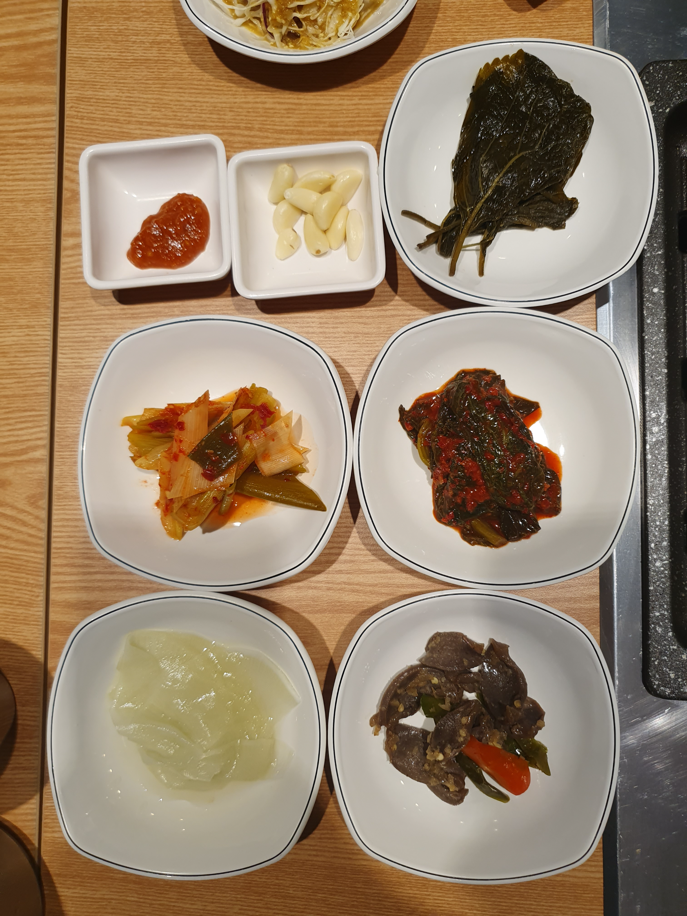 주문 후에 바로 기본 상차림을 해주시는데요. 추가 반찬은 셀프입니다.